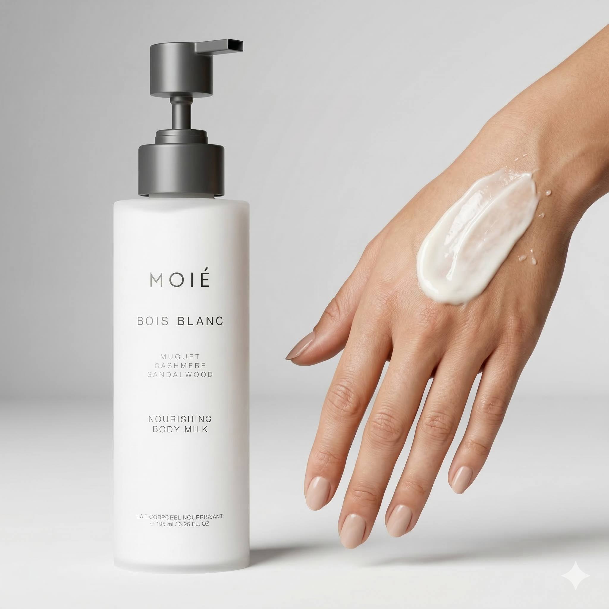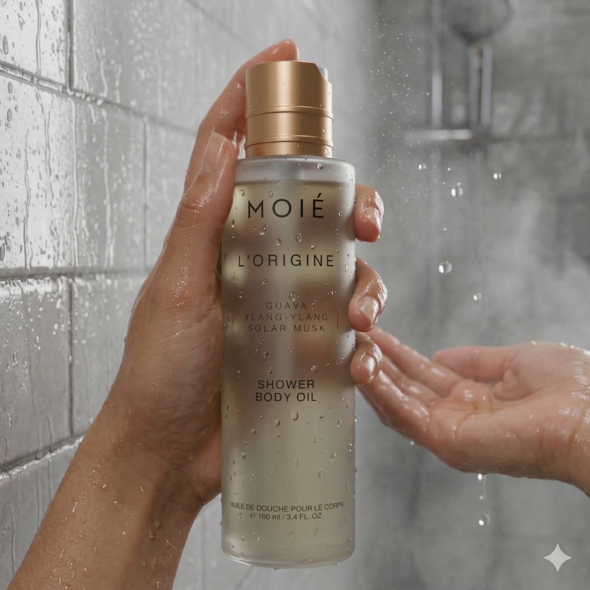 A veil of radiance. Micro-shimmers catch the light while a delicate fragrance diffuses across the skin. This step seals moisture and creates a luminous base for scent layering.